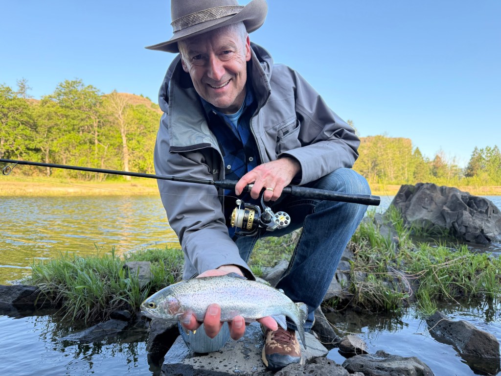 Gary Lewis, award winning author, freelance writer, podcaster, and host of the Frontier Unlimited TV show, found time for trout fishing before the Sunday morning meeting.
